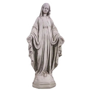 The Mary Outdoor Catholic Statue stands 21 inches tall and is made from fiberglass. This beautifully crafted statue brings a sense of faith and serenity to any environment, enhancing the spiritual ambiance of your space.