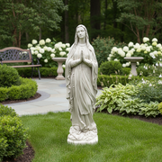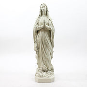 The Our Lady of Lourdes Virgin Mary statue stands 36 inches tall and is made from fiberglass. This beautiful piece brings faith and serenity to any environment, serving as a constant reminder of devotion and inspiration for all who behold it.